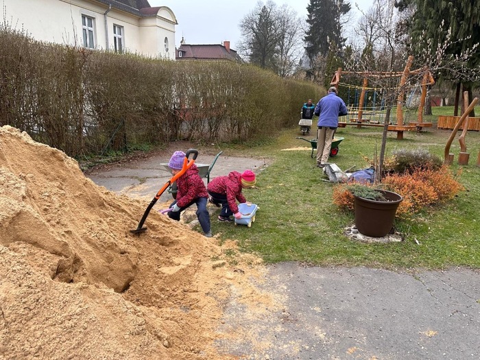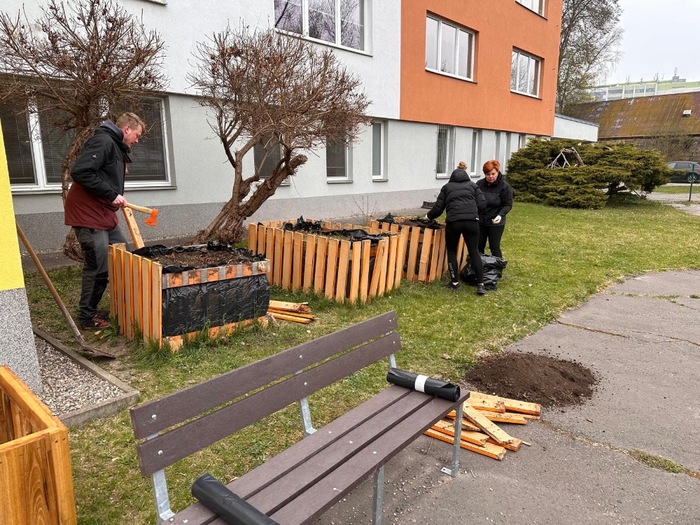 Úvod > Třídy > Sluníčko > Fotogalerie > Jarní brigáda s rodiči. Když rodiče a děti spojí síly- vznikne krásná zahrada.